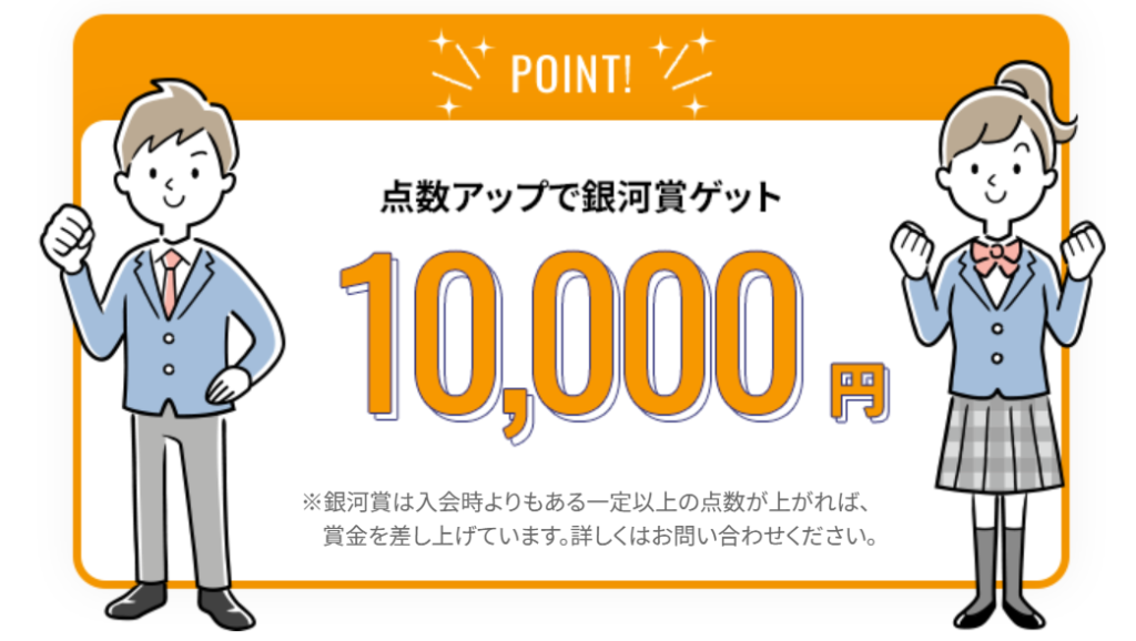 家庭教師の銀河には、成績が一定以上アップしたときに賞金1万円がもらえる「銀河賞」という制度があるんです。